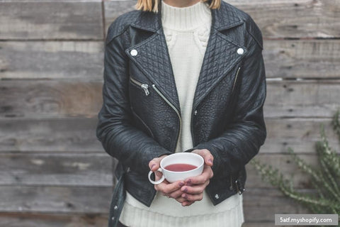 Womans zipped leather jacket. Adjustable belt for a comfortable fit, complete with shoulder pads and front zip pocket.
